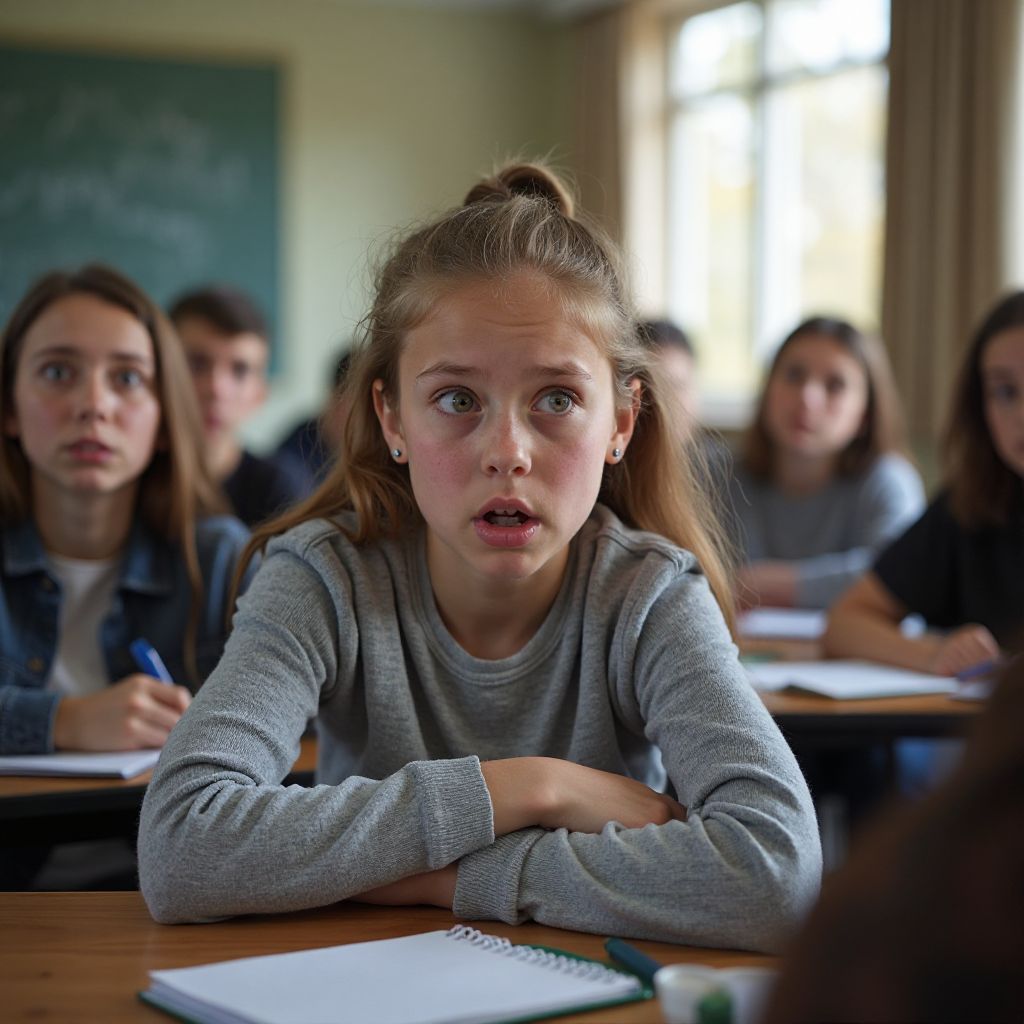 Когда звонок прозвучал, напряжение в классе достигло предела. Марина медленно встала, ощущая, как каждый взгляд пронзает её насквозь. Её дыхание было прерывистым, руки слегка дрожали, а сердце билось так громко, что казалось — его слышат все вокруг. Учительница, слегка нахмурившись, взглянула на неё: «Ну же, Марина, если ты готова, расскажи, в чём дело». Комната стала похожа на арену, где каждый ожидал грандиозного признания.