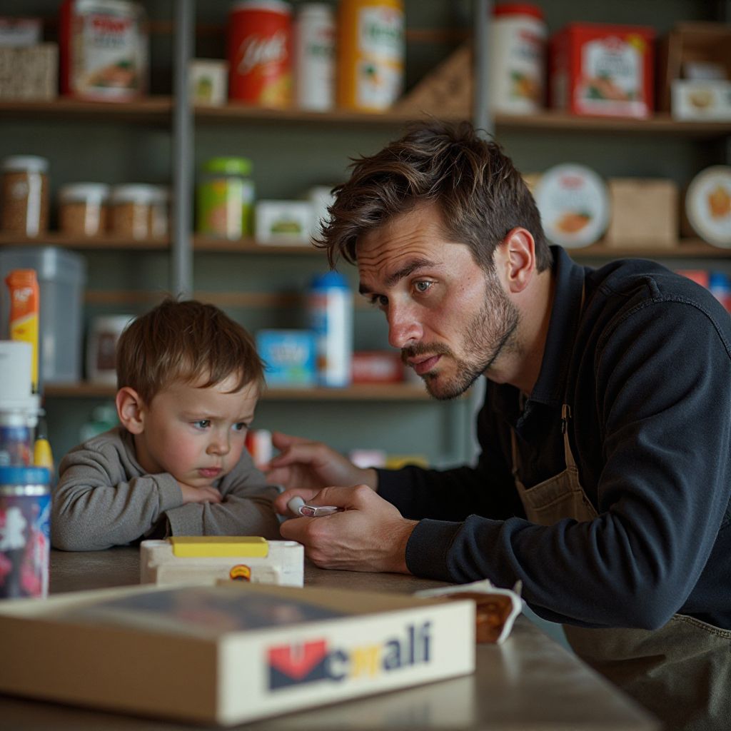Внезапно его пальцы зацепились за старый, помятый пакет с просроченными продуктами, лежащий незаметно на полке. Сердце сжалось, холод пробежал по спине — этот момент стал переломным. «Что он мог найти?» — шептались между собой посетители, наклоняясь к соседу и заглядывая за прилавок. Время, казалось, замерло. Мальчик осознал, что теперь уже не может отступить: правда должна выйти наружу, несмотря ни на что.