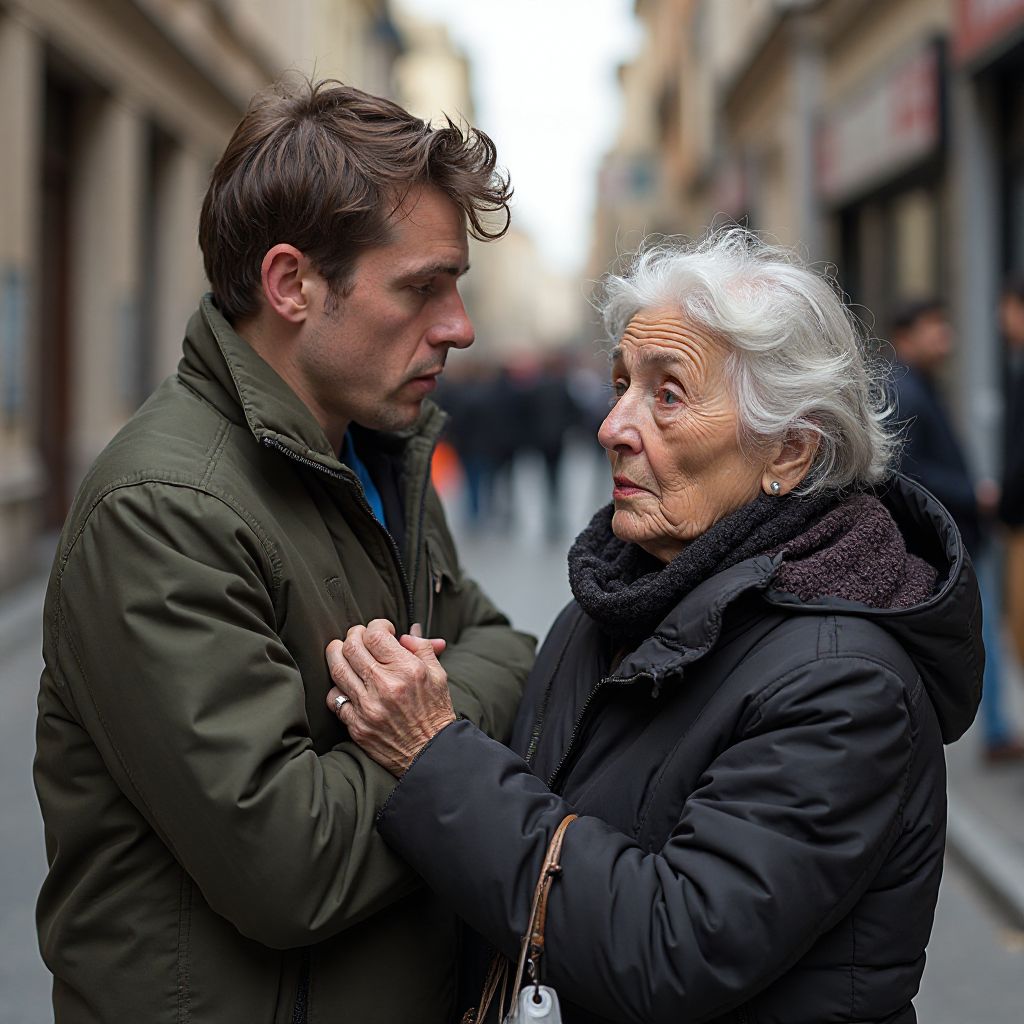 Их разговор привлёк внимание прохожих — некоторые развернули головы с любопытством, другие смотрели косо, недоумённо шептались. В воздухе появилась напряжённость: бездомная женщина вдруг резко поднялась, её глаза заблестели странным светом.