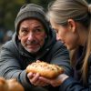 Она отдала последний кусок хлеба бездомному — а потом он заплакал, и всё замерло