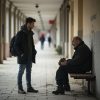 Среди толпы медленно шагала она — Марина, женщина средних лет с глазами цвета дождливого неба и лёгким, но усталым взглядом. В её изношенном пальто с протёртыми локтями и старых ботинках скрывалась история постоянной борьбы за выживание. Её волосы, небрежно собранные в тугой хвост, едва скрывали глубокие морщины, которые, казалось, рисовали по её лицу карту боли и утрат. Её слегка сутулое тело и медленный шаг выдавали тревогу и усталость, но в то же время — упорство и непоколебимую волю. Она пришла сюда не случайно — ей нужно было что-то важное, что могло изменить её хрупкий мир.