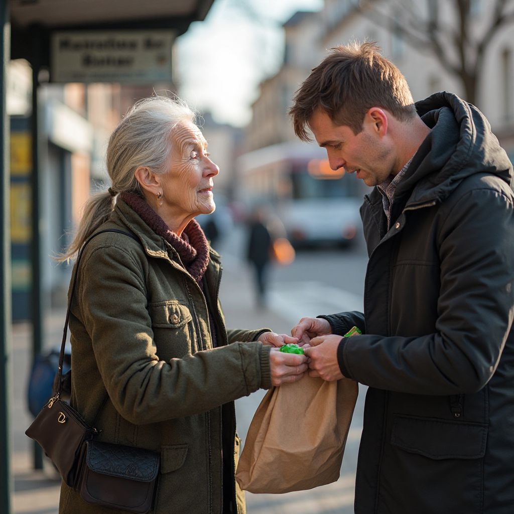«Не трогай, пусть откроет сама», — вмешалась старушка, но руки её тряслись так, что казалось, ей сложно даже удержать пакет. Вокруг начало собираться несколько прохожих, которые обменивались недоверчивыми взглядами и тихими разговорами.