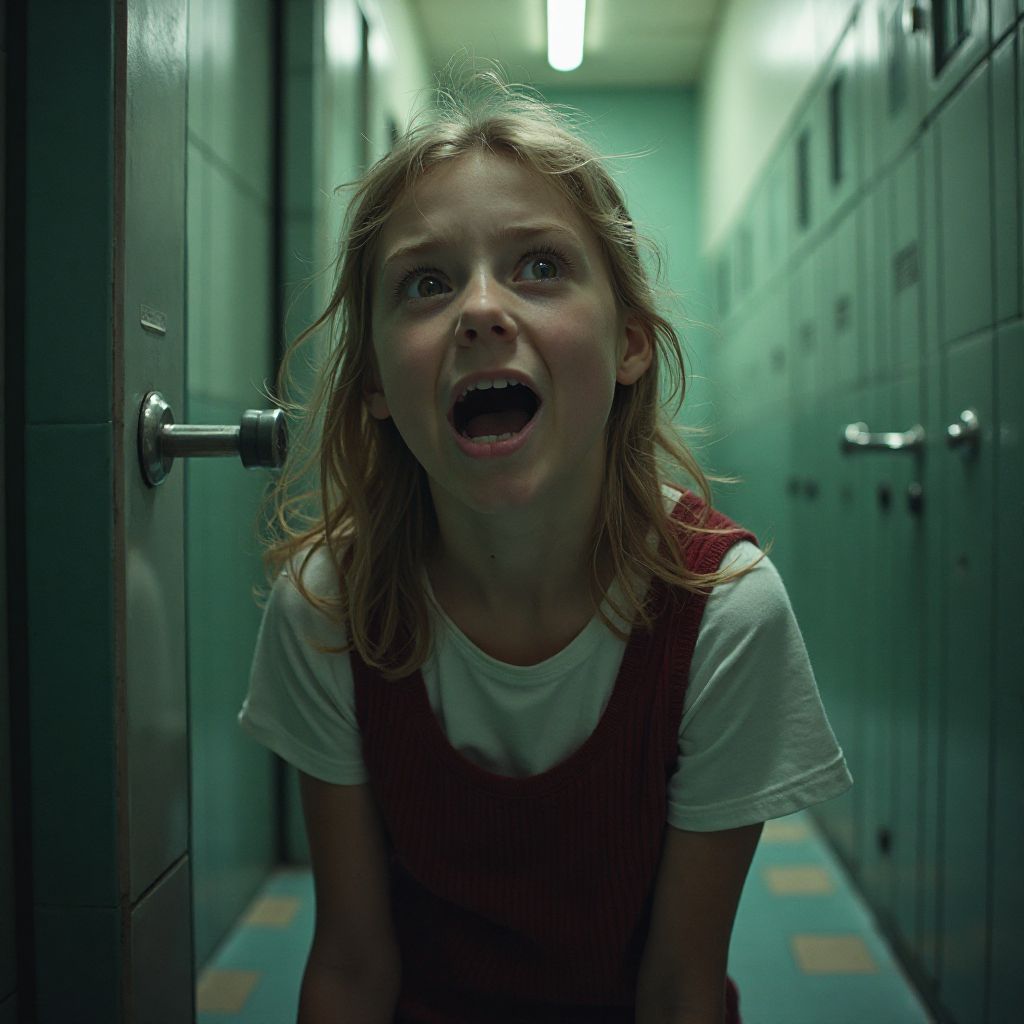 Маленькая девочка Аня, ростом чуть ниже среднего, с большими испуганными зелёными глазами и спутанными рыжими волосами, спиной прижалась к холодной кафельной стене туалета. Одетая в потёртую курточку и старые кроссовки, она выглядела словно потеряшка среди шумных школьных коридоров. Её руки дрожали, а губы тихо шептали внутренние слова — надежду, страх и отчаяние. Здесь, в этом заброшенном месте, она пыталась найти свой островок тишины от бурного мира взрослой несправедливости.