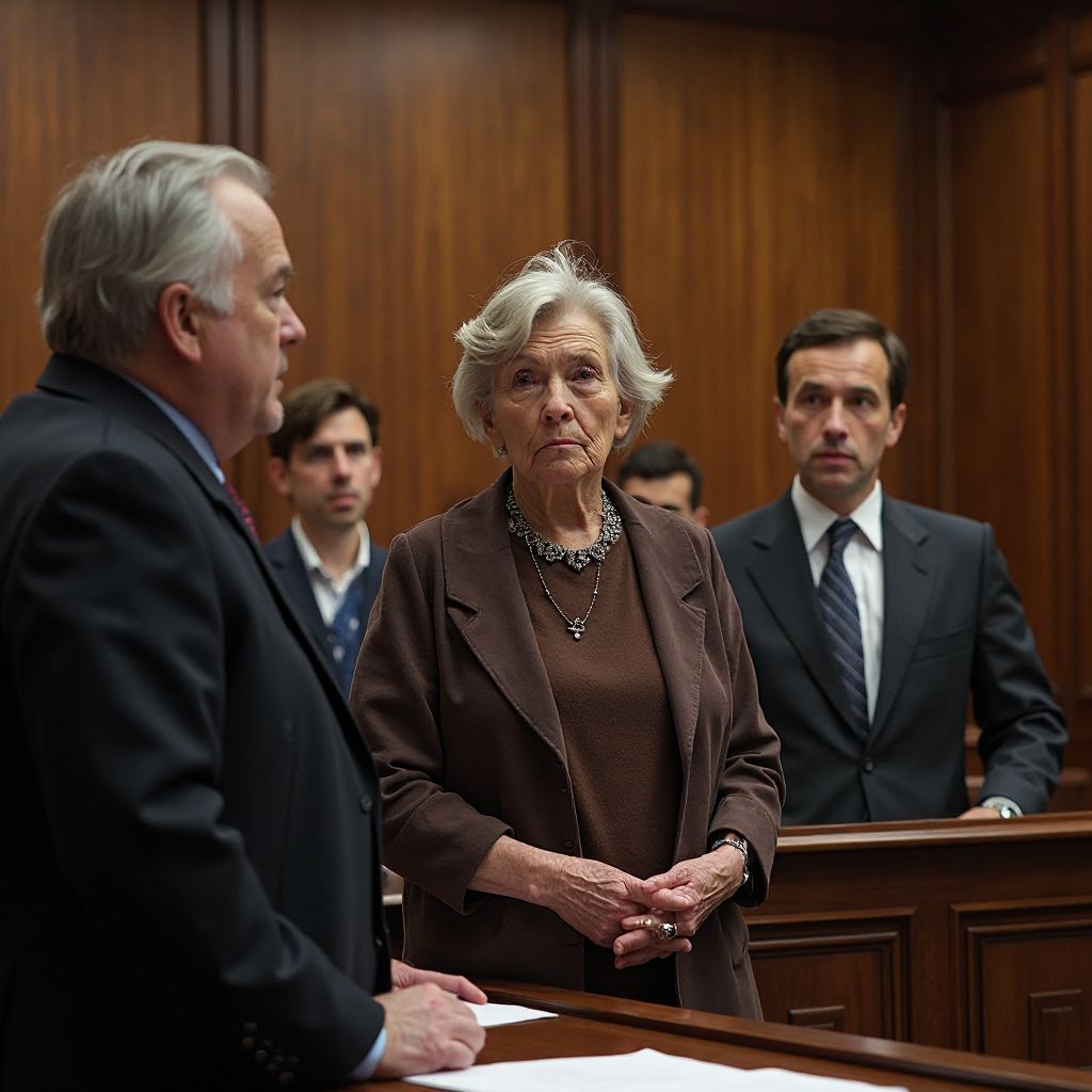Сердце старушки колотилось в груди, когда она медленно поднялась на ноги. Тишина в зале стала ещё более ощутимой — каждое дыхание казалось громом, каждая пауза — каменным гулом. Её руки дрожали, но голос был тверд, словно сталь. «Я — Мария Ивановна, и я видела, что произошло в тот день,» — начала она, глаза блестели от слёз и решимости. Весь зал замер; даже судья отложил молоток, не веря своим ушам.