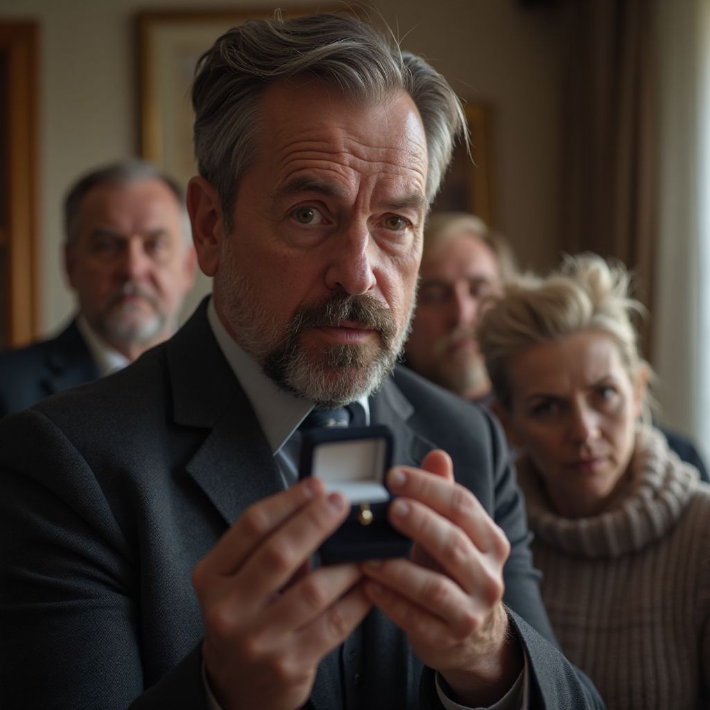 Внутри лежало старое серебряное кольцо с затёртым гравировкой, покрытое лёгким налётом времени. Алексей поднял его, зачарованный и одновременно наполненный болезненным трепетом. Слёзы начали медленно катиться по его щекам. «Это же кольцо матери…» — едва слышно прошептал он.