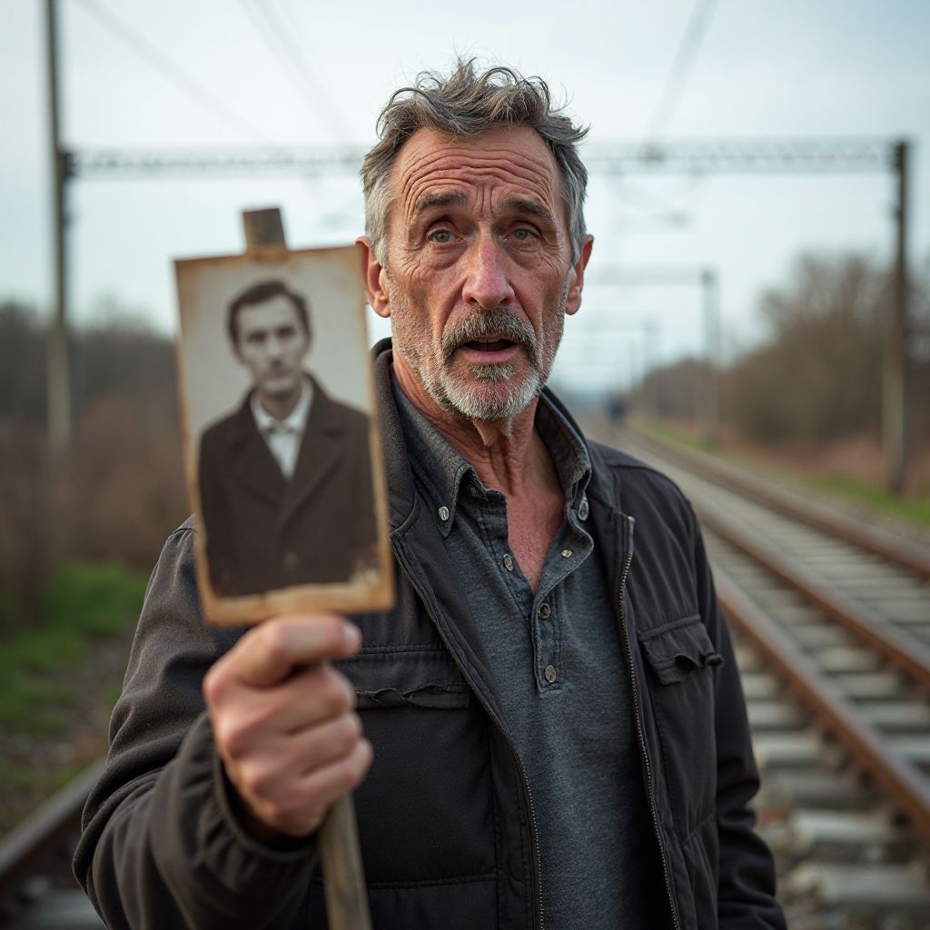 «Вот что тебе надо, Серёжа, — пробормотал он самому себе, — найди правду и докажи хоть кому-то, что ты не сломлен». Его пальцы нервно сжали фото, и он направился вдоль рельсов, где заметил нечто необычное — старая, иссохшая фотография, прикреплённая к деревянной колышке у самого края пути.
