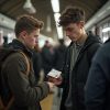 Стоя у путей, он казался чужаком в этом месте. Высокий и худощавый мужчина средних лет, с уставшими серыми глазами, одетый в поношенный джемпер и туфли, которые не выдержали бы длительной прогулки. Его волосы были взъерошены ветром, а взгляд скользил между тенью на фото и холодной платформой. Он не был ни бедным, ни богачом — скорее, потерянным человеком, который искал ответы, не зная, где их найти. Его руки нервно сжимали складную сумку, словно это была последняя опора в зыбком мире.