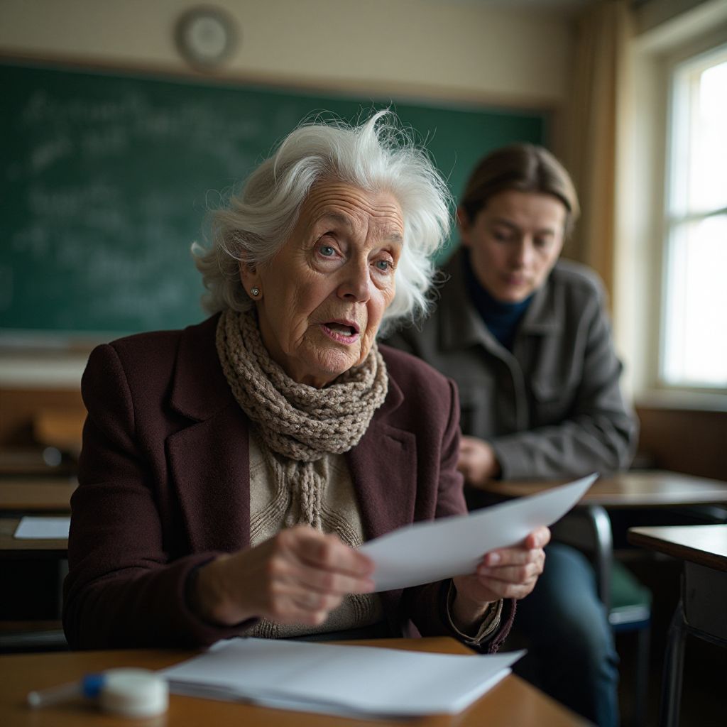 В углу, под тусклой лампой, старая женщина в потёртом строительном халате осторожно прибиралась. Её руки, покрытые морщинами, мягко скользили по деревянным поверхностям, собирая пыль и мусор. Сердце билось ровно, но в груди зудела неясная тревога. Её глаза — глубокие, усталые, все ещё хранящие доброту — вдруг зацепили небольшой свёрток бумаги, лежащий под партой. Она осторожно подняла записку и развернула её, не подозревая, что это изменит всё.