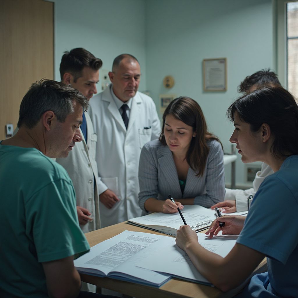 Он задумался, наступил момент выбора. «Что я должен сделать? Смотреть в лицо правде или защищать семью от ужасов реальности?» — мысли преследовали его, вызывая внутренний разрыв. «Я не могу убежать от этого. Нужно знать, какую цену мы заплатим». Его глаза наполнились решимостью, и он шагнул к врачу с просьбой узнать всё, не дожидаясь ясности.