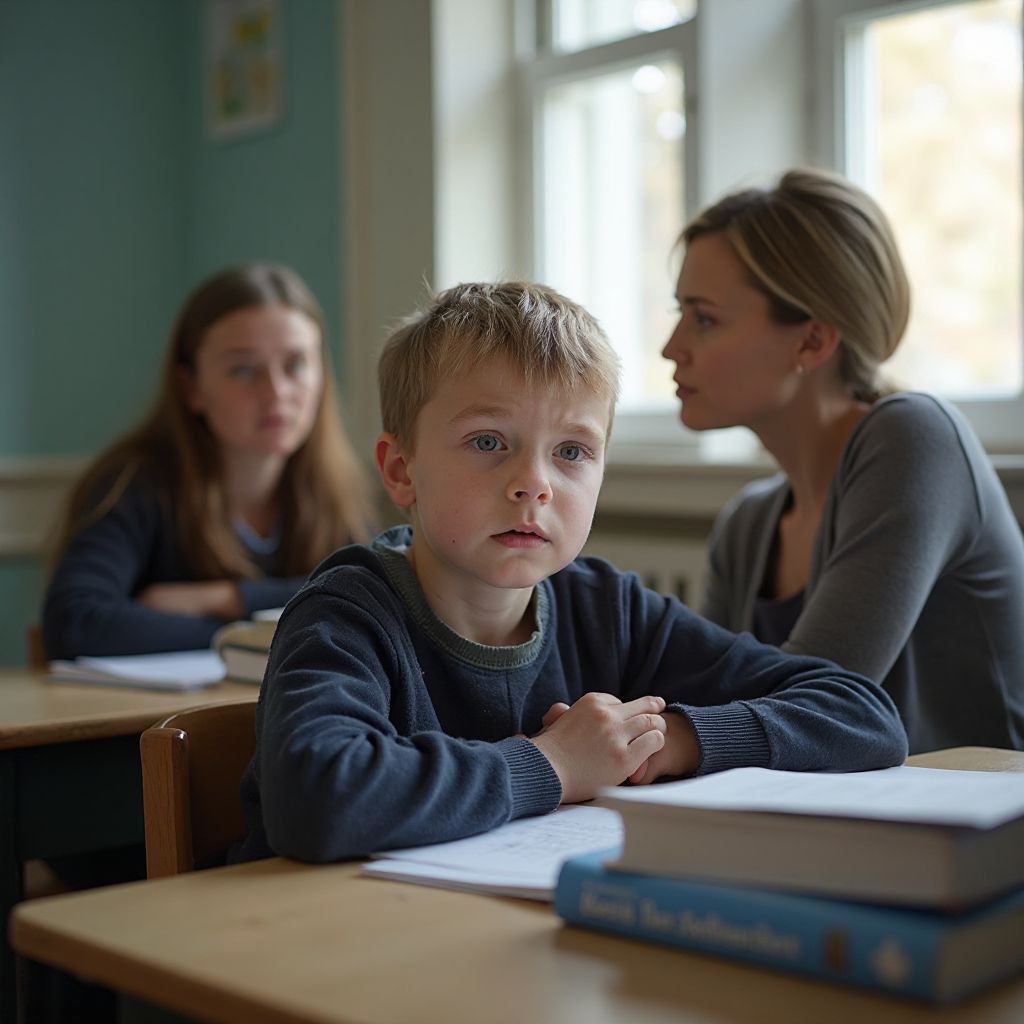 Паша стоял в оцепенении, чувствуя, как вокруг него нарастает социальная пропасть. Он заметил, как некоторые дети, не понимая глубины ситуации, отстраняются, а другие увлечённо пересказывают сказанное учительницей. В голове начинал зарождаться тихий протест и страх. «Почему я — никто? Почему все смотрят на меня, как на что-то ленивое и ненужное?» Он поднял голову и увидел, как учительница смотрит на него с холодным, почти научным безразличием, будто он — объект эксперимента, а не живой ребёнок.