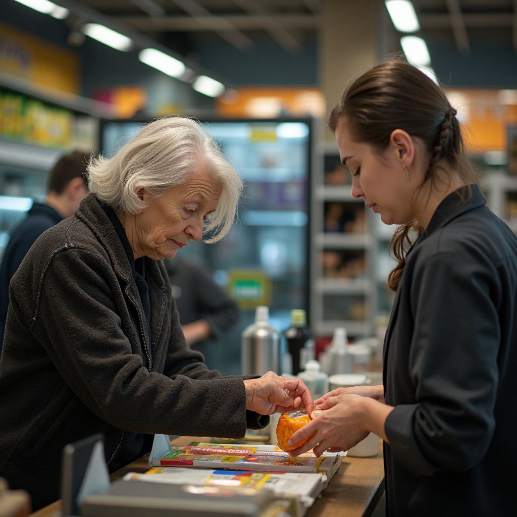 В руках старушка держала мягкий пакет с единственным продуктом — куском сыра. Её взгляд медленно скользил по людям в очереди, успокаивая и одновременно вызывая любопытство. Её мысли были полны тревоги: последние деньги на продукт, счета на следующий месяц, тоска по ушедшим временам. Но теперь, казалось, мир вокруг готовился открыть новую страницу её истории. — «Опять эти взгляды», — думала она, чувствуя, как окружающие косо смотрят на её бедность и скромность.