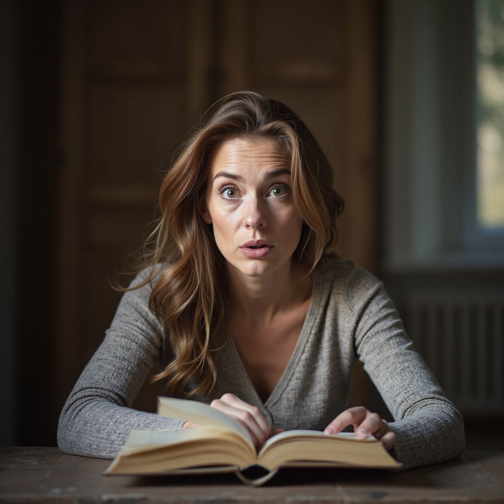 В тот момент уголок страницы застоялся, и она заметила красное пятно — словно ожог, отпечаток боли и забвения. «Что за тайна скрыта в этих строках?» — её руки слегка дрожали, сердце колотилось учащённо. Шорох бумаги эхом отдавался в тишине, словно сама книга вздыхала от предстоящего разоблачения. Мурашки пробежали по коже, а дыхание стало неровным — что же откроется?