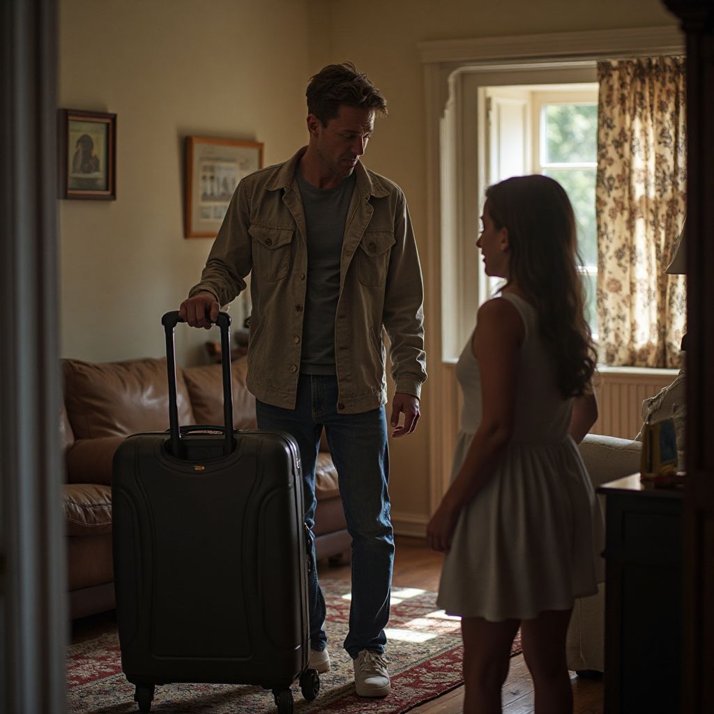 В центре комнаты стоял он — высокий худощавый мужчина лет пятидесяти с пристальным взглядом тёмных глаз. Его седеющие волосы небрежно растрепаны, а плечи согнуты под тяжестью невысказанных слов и усталой жизни. На нём была простая тёмно-синяя куртка, старая джинсовая рубашка и поношенные ботинки. Казалось, каждый его жест хранил в себе историю борьбы и обиды. Его руки дрожали чуть заметно, когда он сжал чемодан, стоящий у его ног. Взгляд блуждал по лицам собравшейся семьи, в которых отражался спектр чувств — от шока до недоверия.