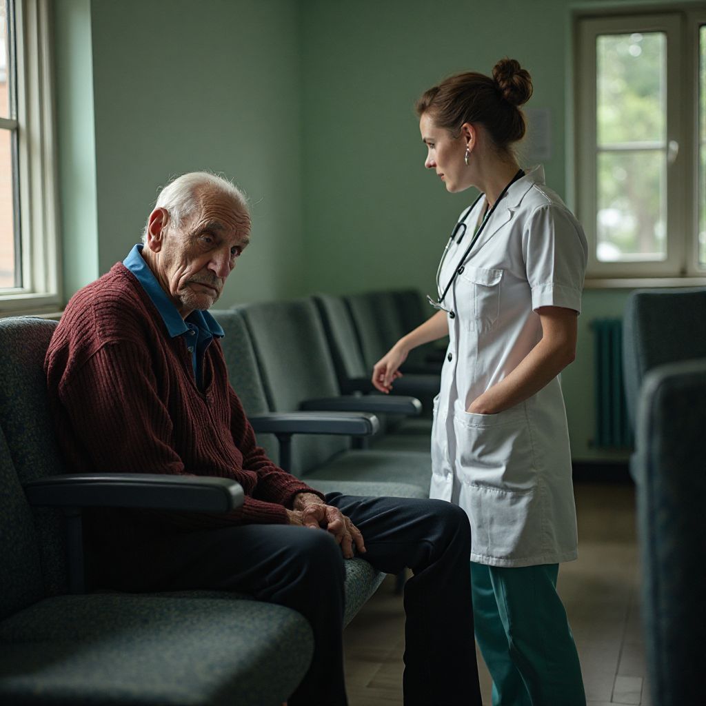 Мысли Петра были полны тревоги и одиночества. Ему кажется, что весь мир прошёл мимо, словно он стал невидимкой в огромной толпе равнодушия. Боль в груди затмила холод промозглого осеннего воздуха. Сегодня он пришёл в поликлинику на рынке, надеясь получить долгожданную помощь для тягостных недугов, с которыми борется последние несколько лет. Но очередь была бесконечной, люди позади шумели и ворчали, никто не обращал внимания на старика, изо всех сил пытающегося не потерять сознание от усталости и боли.
