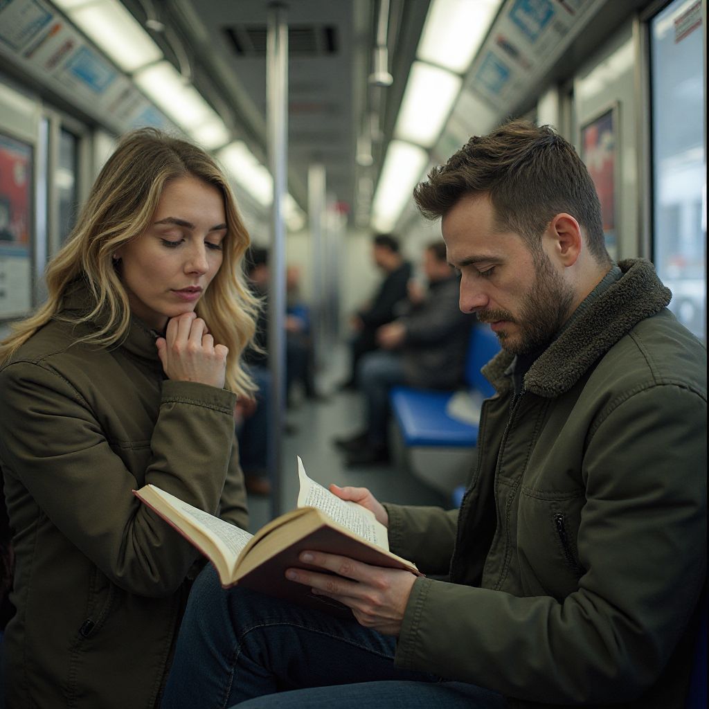 Ночью метро скользило по тёмным туннелям, зловещий гул поездов эхом отзывался в пустых вагонах. Воздух был затхлый, смешанный с запахом железа и старой кожи сидений. Тусклый свет ламп мерцал, едва освещая лица пассажиров. На станциях холодный ветер прорывался через щели, заставляя людей глубже прятаться в своих пальто. Этот вагон был почти пуст — несколько усталых душ ждала поезд в длительном пути.