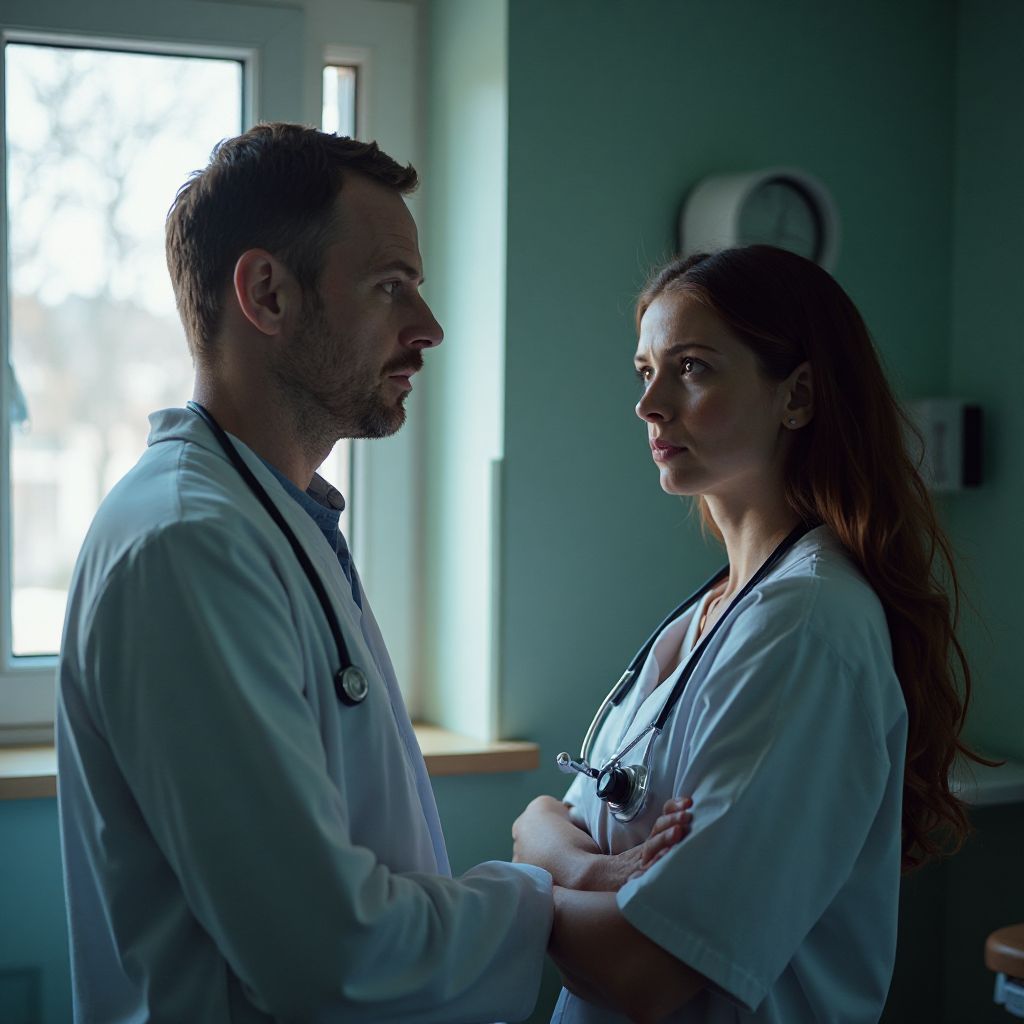 Доктор Соколов, мужчина средних лет с усталыми глазами и слегка седеющими висками, остановился у окна. Его строгий медицинский халат чуть помят, а на лице застыла смесь усталости и внутреннего напряжения. Его рост и осанка выдали человека, привыкшего к строгой дисциплине и тяжёлой работе, но в этот момент казалось, что все силы покинули его. Он посмотрел в темноту улицы и, тихо повернувшись к медсестре Марие, прошептал: «Никто не ждал в этой комнате рождения ребёнка.» Его голос был настолько тихим, что даже звуки стерильного коридора не смели нарушить эту тишину.