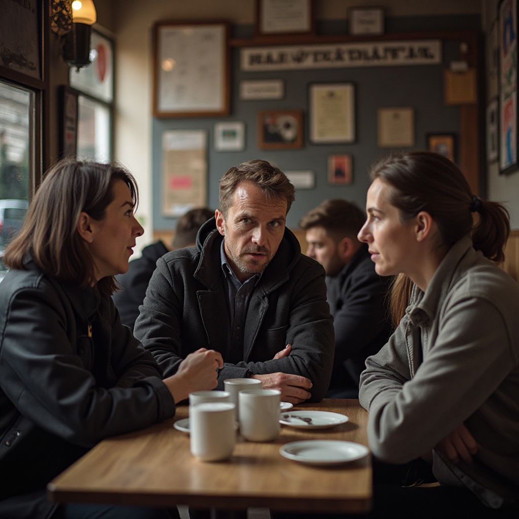 Он почувствовал, как дыхание учащается, ладони начинают потеть. Всё внутри кричало: это то, что изменит его жизнь. Но опасение, смешанное с любопытством, набирало силу. В кафе наступила тишина — взглядов избегали, шёпот стал громче, а атмосфера накалилась, как перед бурей.