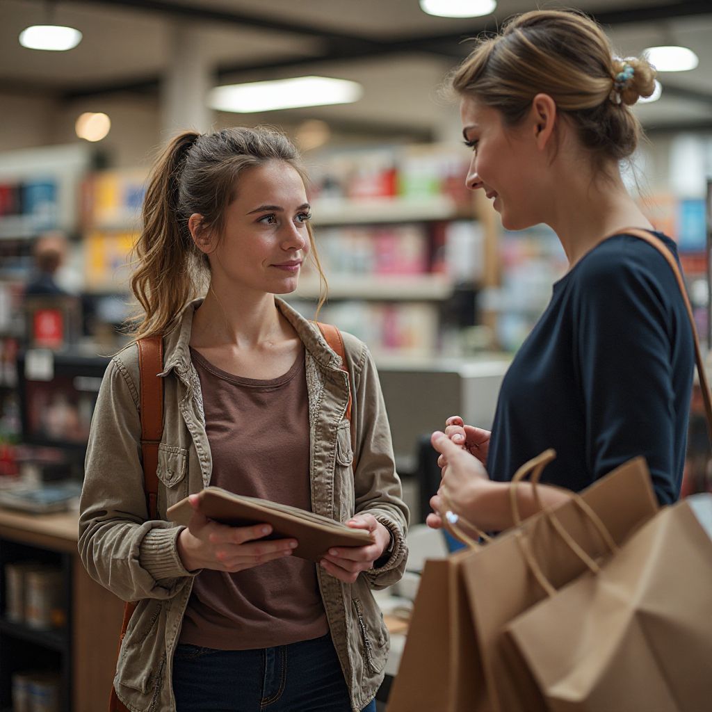 Она повернулась, взглянув на него — в глазах его играла странная искра. Не зная почему, женщина ощутила прилив надежды и тяжёлое напряжение одновременно. Сердце её билось так громко, что казалось — слышит весь магазин. Она медленно потянулась к нему, слыша, как некоторые покупатели притихли и с интересом следят за разворачивающейся сценой.