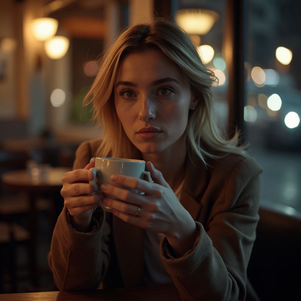 В это время в кафе вошла женщина — тёмные глаза и усталый взгляд выдали прожитые ею годы борьбы и лишений. Её аккуратное, но изношенное пальто едва скрывало тонкую фигуру, а под слегка поникшей шапкой выглядывали кудрявые локоны. Подойдя к барной стойке, она заказала только чашку крепкого эспрессо. Её голос был тихим, почти неразборчивым — будто она боялась нарушить хрупкое равновесие вечера.