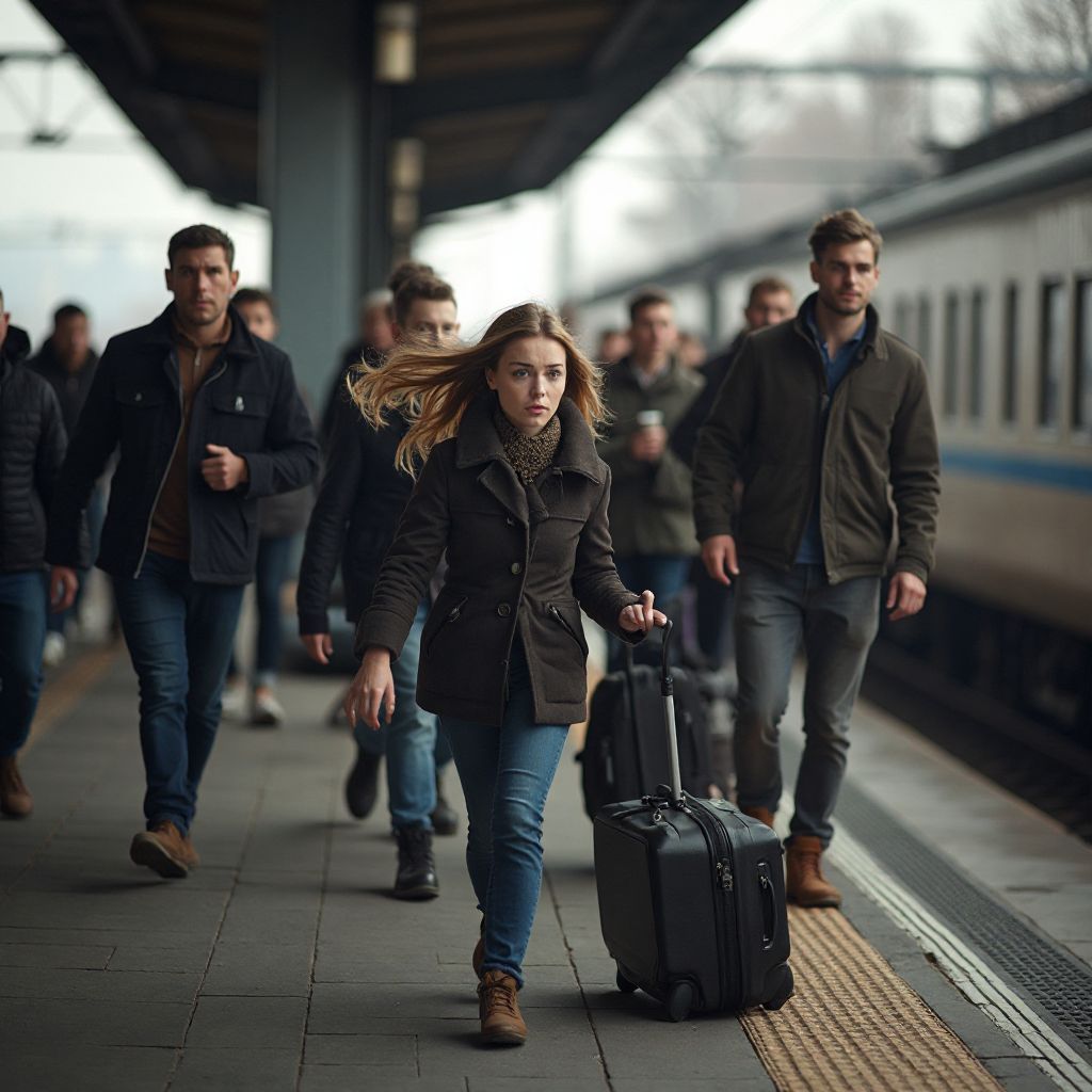 Вокруг них начали собираться люди — случайные прохожие и работники вокзала, заинтересованные происходящим. «Это та самая девушка?» — шептал пожилой мужчина, медсестра из поликлиники рядом кивала, а подросток в рваной куртке слушал с широко раскрытыми глазами. Разговоры смешивались с гулом электрички, создавая атмосферу нарастающего напряжения.