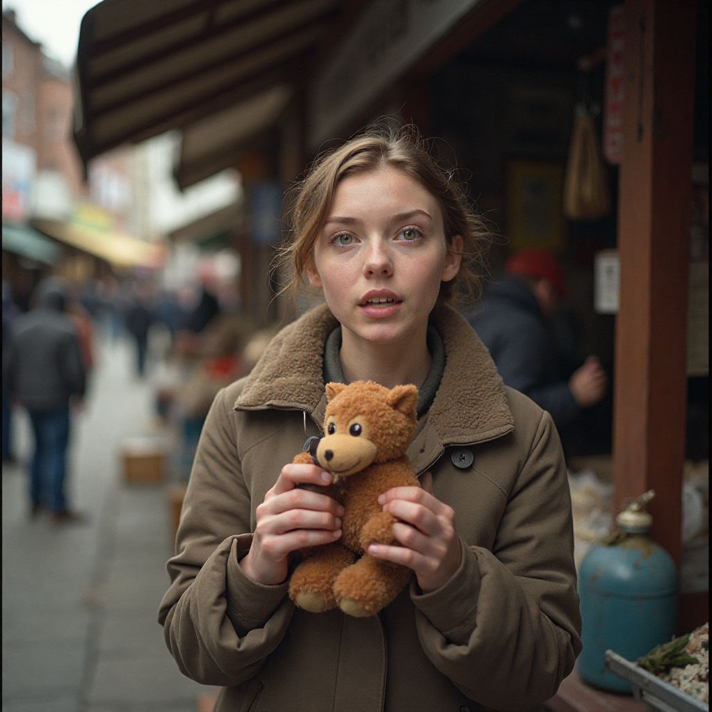 «Откуда это здесь?» — мелькнула у неё мысль, когда к ней подошёл торговец с нескрываемым любопытством в глазах. «Никогда раньше не видел такого,» — проговорил он, голос дрожал от неожиданности. «Может, это наследие ушедших времён?» — добавил молодой мужчина, глядя на куклу с интересом. Тень недоверия мелькнула среди покупателей, сопровождаемая тихими шёпотами: «Кто-то пытается что-то скрыть?», «Сколько раз эта игрушка мигрировала из рук в руки?»
