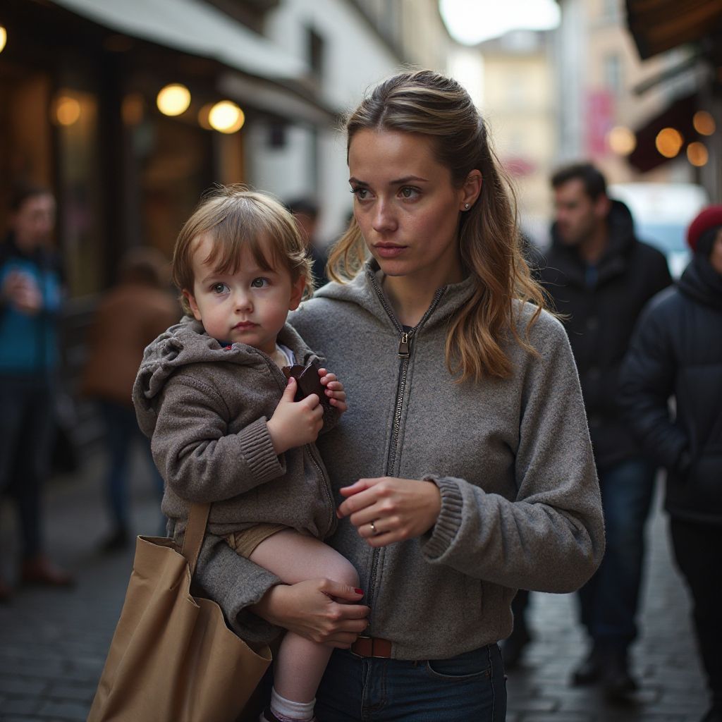 Возле них остановились ещё несколько прохожих — кто-то шептал: «Видели, что там было? Человек с судимостями может такое носить?» Другой мрачно усмехнулся: «Может, пытается что-то спрятать, опасное, хуже всякой бедности…» Ещё одна женщина невольно вытерла слёзы, глядя на ребёнка, неотрывно следящего за матерью.