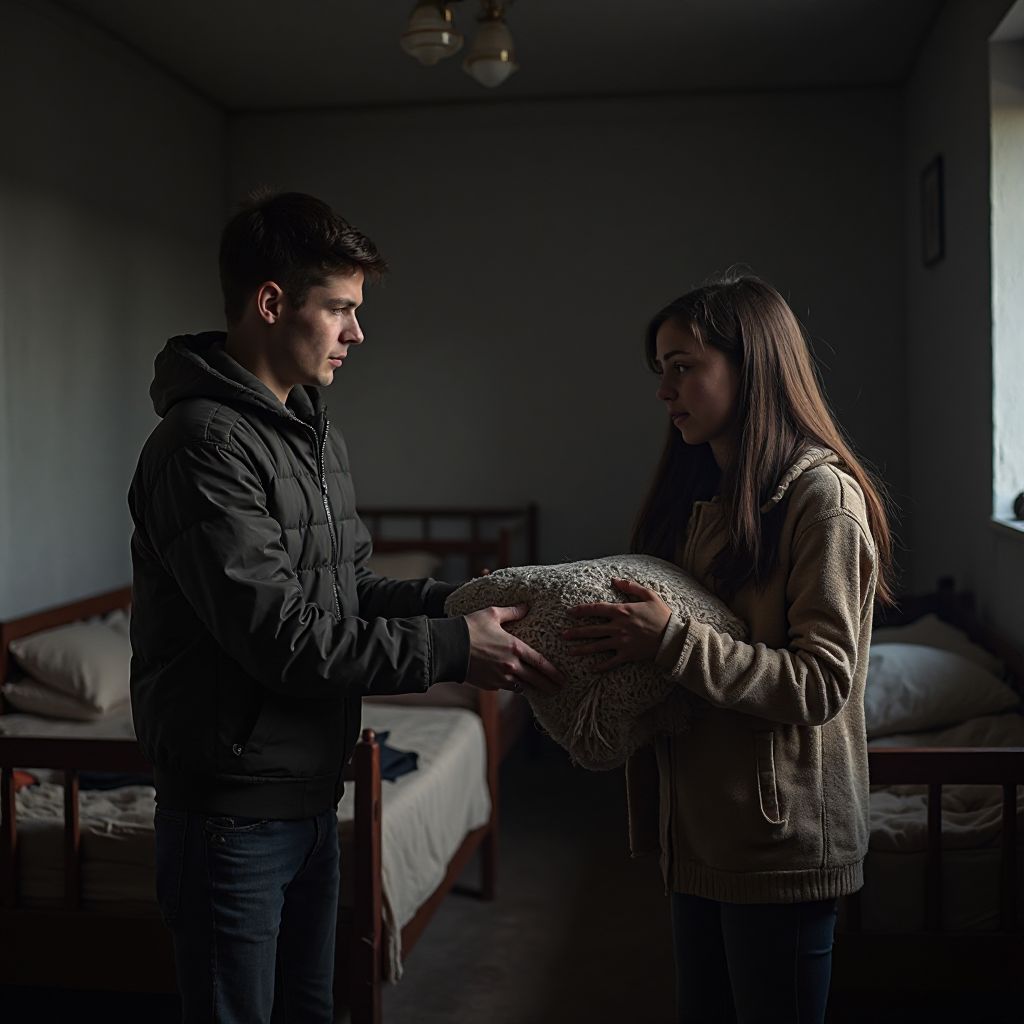 Дверь приюта медленно закрылась за мужчиной, оставляя в комнате холод и гнетущую тишину. Девушка обернулась, держа свёрток так же крепко, как сжимались зубы от волнения и страха. Вокруг стояли люди с затаённым дыханием, в их глазах читался смесь недоумения и беспокойства. Сердце стучало в висках так громко, что казалось — слышат даже те, кто не проявляет интереса. Никто не мог поверить, что этот чужой человек — простой бездомный — мог оставить что-то настолько важное.