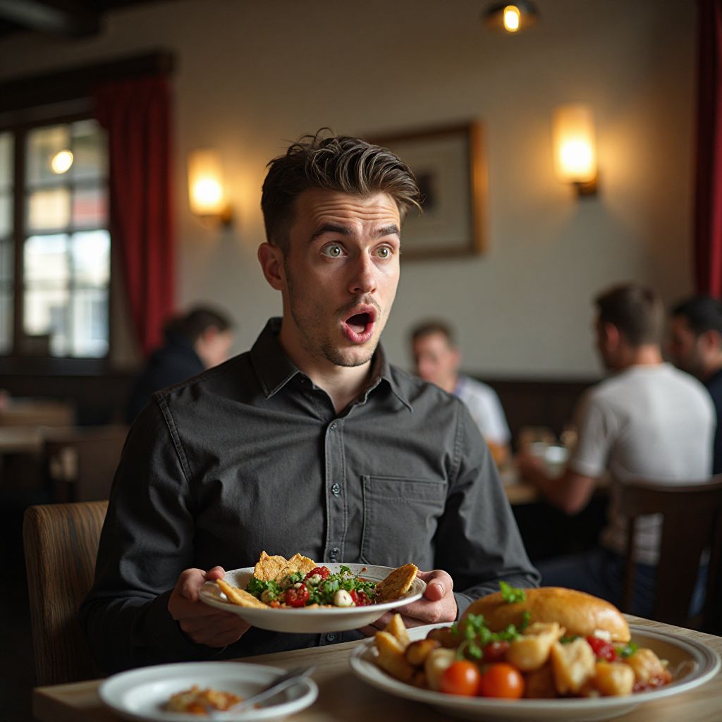 — Что? Я не буду платить! — внезапно заявил тот, отодвигая тарелку в сторону.