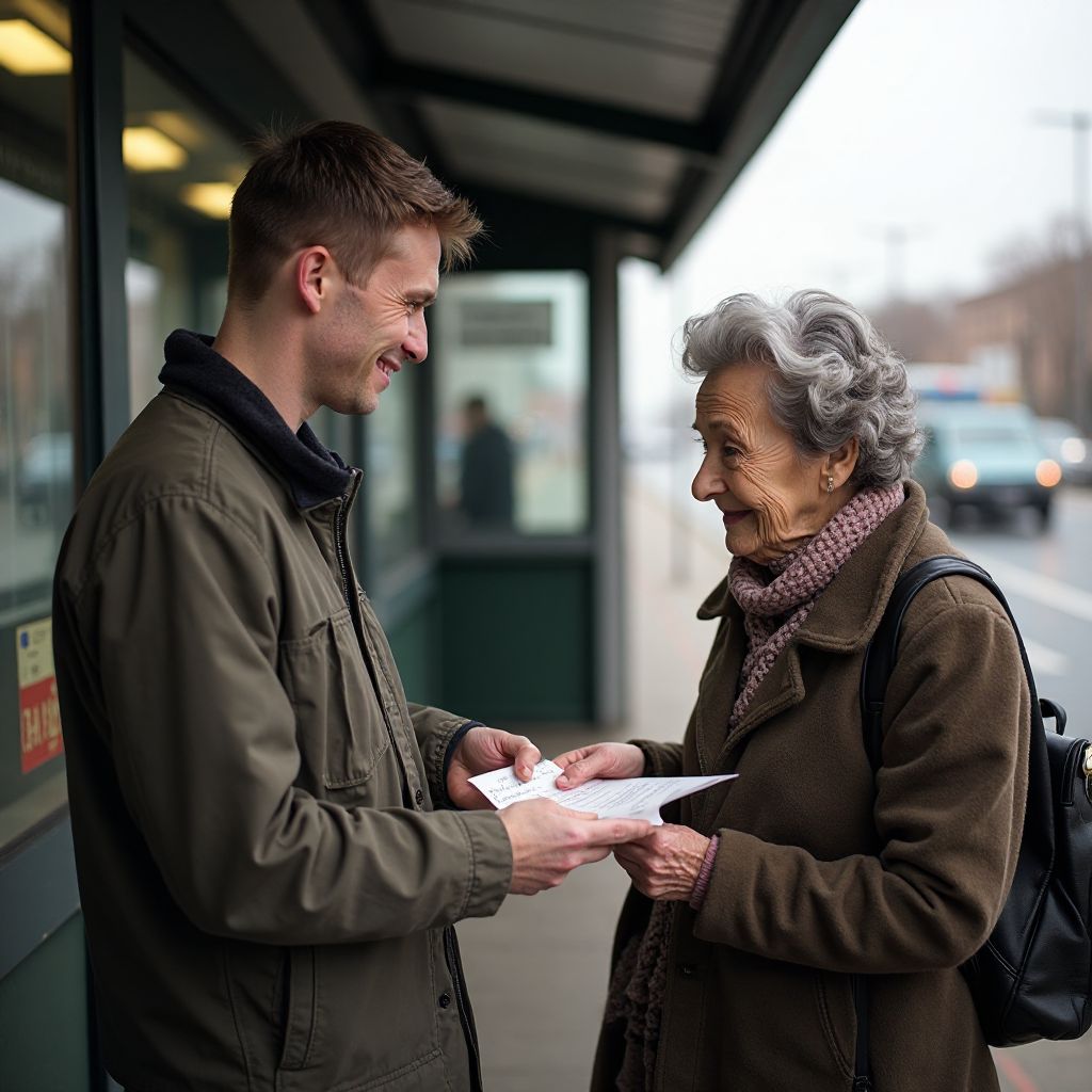 Юрий пришёл на вокзал не просто так — он спешил на работу после долгого дня в местном кафе. В голове крутились мысли о счётах и завтрашних планах, но сердце подсказывало уделить внимание тому, кто в этот момент нуждался больше. Он заметил худенькую старушку с седыми волосами, едва удерживающими шапку, которая беспомощно пыталась протиснуться в переполненный автобус. Не раздумывая, он подошёл и протянул ей деньги за проезд, ощущая лёгкую дрожь не только от прохлады, но и от внутренней тревоги.