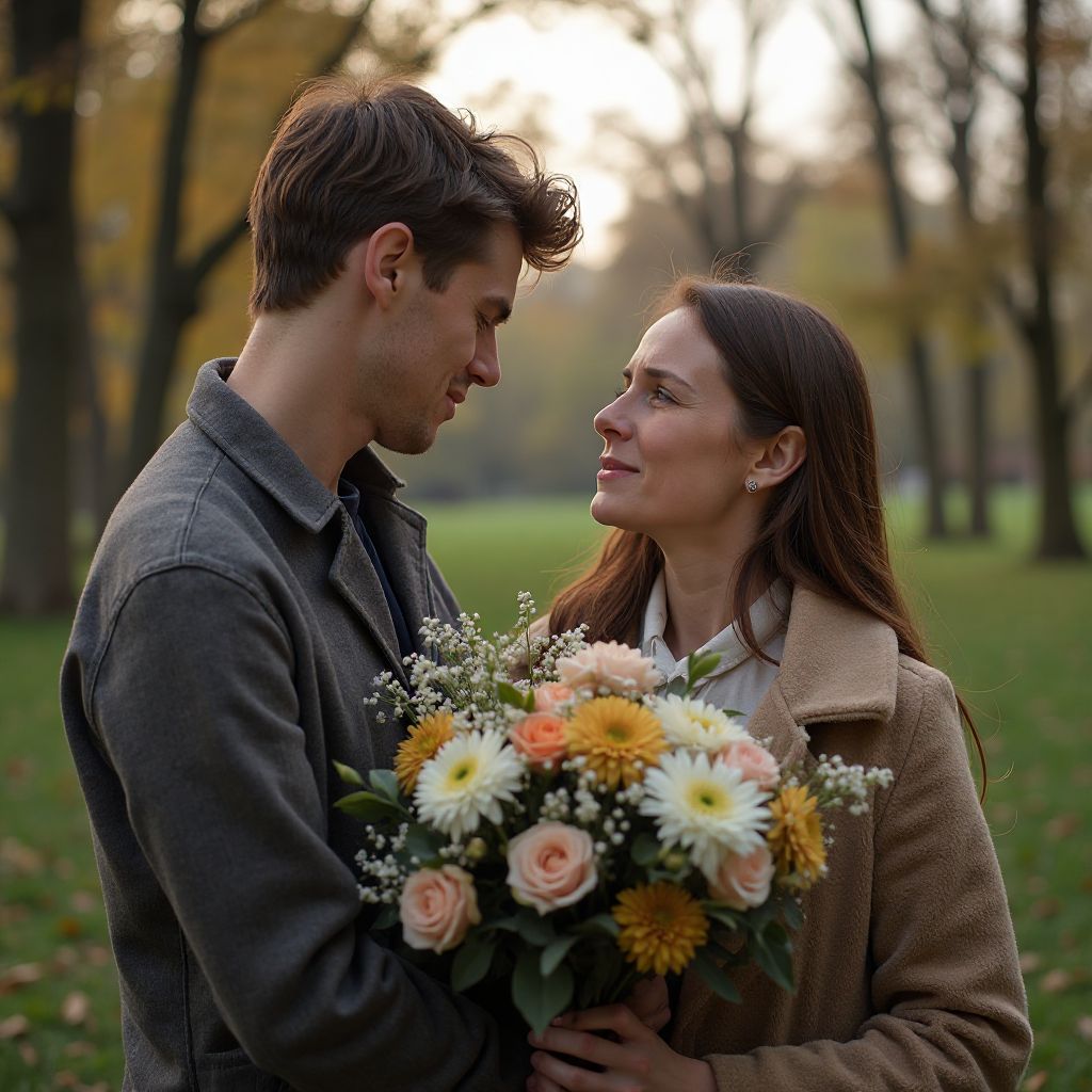 Внутри него билась тревога, и мысли метались, как осенние листья под ветром. «Что я могу дать ей, кроме этих цветов? Она заслуживает гораздо больше», – думал он, глядя на растворяющийся в тумане взгляд прохожих сквозь стеклянные двери. Сердце билось учащённо, норовя выскочить из груди. Он точно не был богат, и чаще всего мир казался несправедливым, но сегодня он хотел показать ей, что она не одна. Каждый сантиметр его тела кричал о надежде и страхе, одновременно переплетённых в плотное кружево сомнений.
