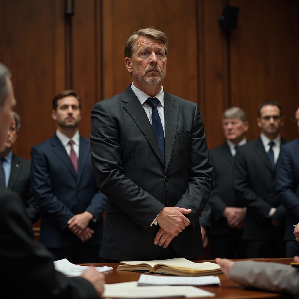 Но тут произошло нечто странное: мужчина достал из-под плаща толстую папку, слегка потрёпанную и запылённую. Он положил её на стол и, не отворачиваясь, внимательно посмотрел на судью. В глазах стоял странный блеск. «Это — результат многих лет борьбы… доказательства, которые никто не хотел видеть». Все присутствующие затаили дыхание — казалось, воздух в комнате сгустился, а время замедлилось.