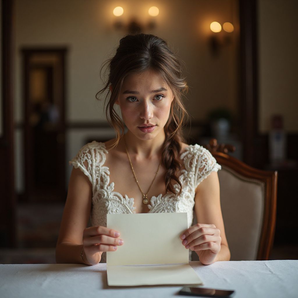 Комната наполнилась вздохами и шёпотом. «Кто могла написать это?» — спросила мать невесты, дрожь пронзила её голос. Аня, поддерживая спокойный тон, продолжила: «Я была свидетелем несправедливости, которую никто не хотел признавать. Наша сестра — не та, за кого себя выдаёт. Ты не знаешь, что скрывает её улыбка и почему она отказалась от меня, когда я нуждалась в поддержке». Взгляд всех обрушился на невесту, чьё лицо побледнело. «Это неправда!» — воскликнула она, дрожащими руками пытаясь взять записку.