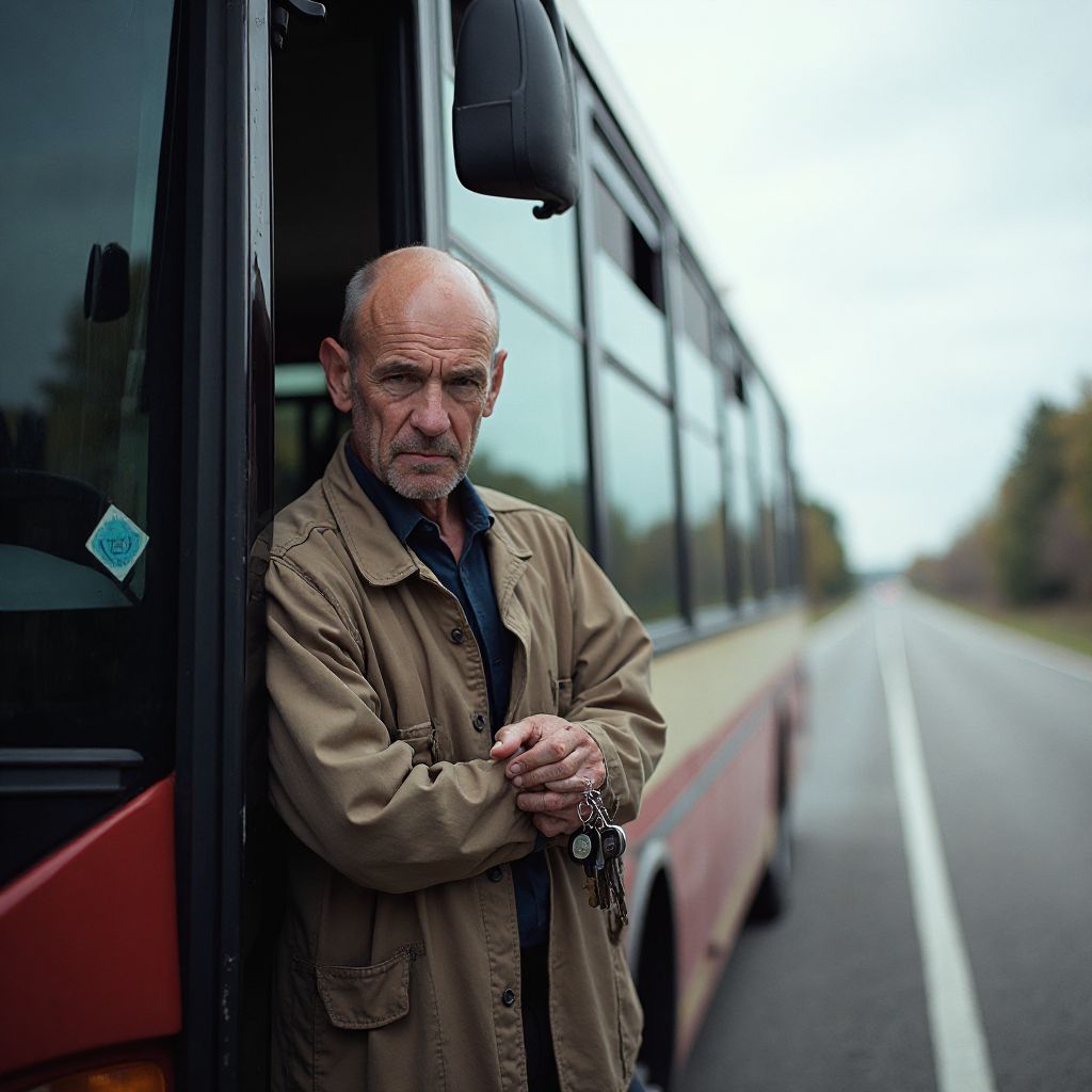 Алексей, водитель автобуса, стоял на ступеньках своей машины. Его рост был средним, но осанка всегда выдавала человека, привыкшего бороться с обстоятельствами. Его запылённая куртка, пожелтевшая рубашка и смятые брюки говорили о буднях, тяжёлых и непростых. Глубокие морщины на лице и выцветшие глаза отражали усталость и скрытую боль. Казалось, что каждый шрам в его жизни оставил отпечаток на теле и душе.