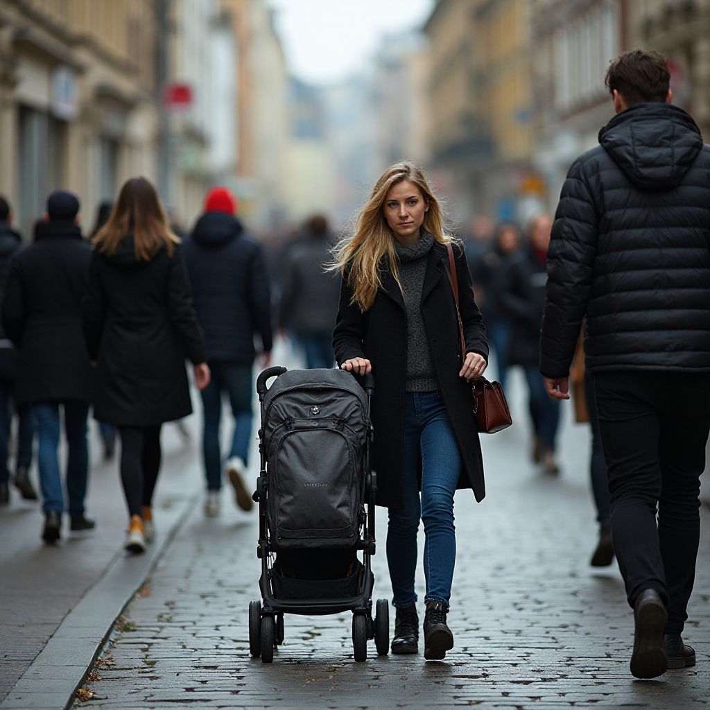 Она шла медленно, почти не касаясь земли, словно боясь нарушить хрупкое спокойствие. Молодая женщина, лет двадцати пяти, со светло-каштановыми волосами, собранными в небрежный пучок, наделённая тонкими чертами лица и большими тёмными глазами, которые казались усталыми и полными внутренней боли. На ней была старая тёмно-синяя куртка, немного великоватая, и потертые джинсы — одежда скромная, даже суровая, что резко контрастировало с гуляющим рядом оживлённым городом. В руках она держала пустую детскую коляску — тщательно очищенную, без единой царапины, но пугающую пустотой.