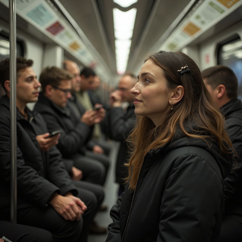 Девушка прижалась к стене, сжимая в кулаке заветную фотографию малыша. Её тело охватил холод, и в глазах блеснули слезы — на грани слёз и улыбки. Она чувствовала, как вся социальная несправедливость этого города — её одиночество, бедность и пренебрежение — вдруг приобрели острое звучание. В этот момент вагоны наполнились чем-то новым — надеждой и тайной.