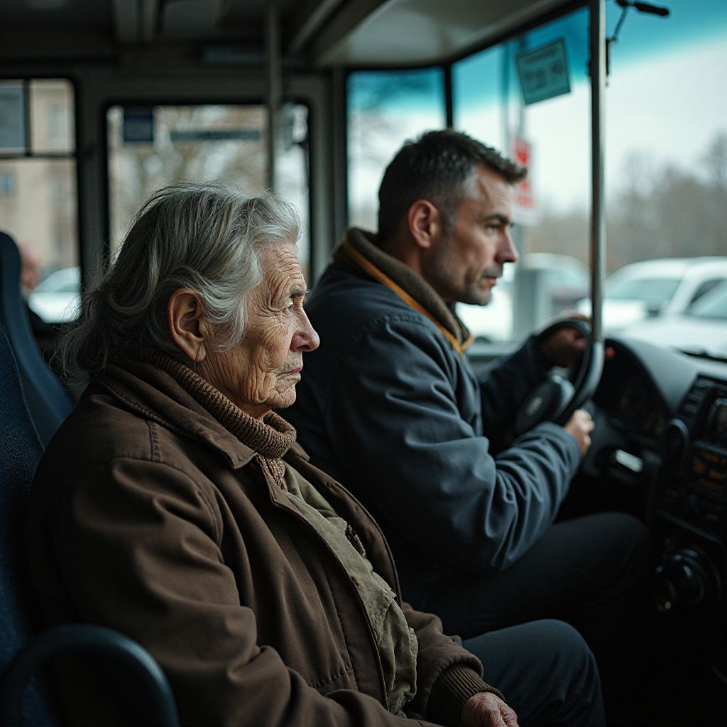 В толпе у остановки выделялась пожилая женщина. Её тонкое, почти прозрачное лицо было покрыто сетью морщин, глаза — усталыми, но всё ещё живыми — блестели под мягкой серой шапкой. На ней была старая, изношенная куртка, немного большая и с далеко не новым запахом, а в руках — сумка, которая казалась тяжёлой от старых воспоминаний. Она села на автобус привычно, как каждый день, тихо и без лишних слов, словно была частью этого уставшего мира, где все спешат, но никто не замечает одиноких душ.