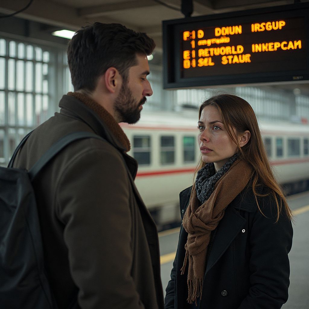 Пассажиры вокруг начинали обращать внимание на необычную сцену. Кто-то шептал, кто-то настороженно смотрел с сомнением. Несправедливость вечера давила на всех — замерзшие тела, задержанные поезда, слёзы мужчины: всё словно сливалось в ужасную мелодию страдания.