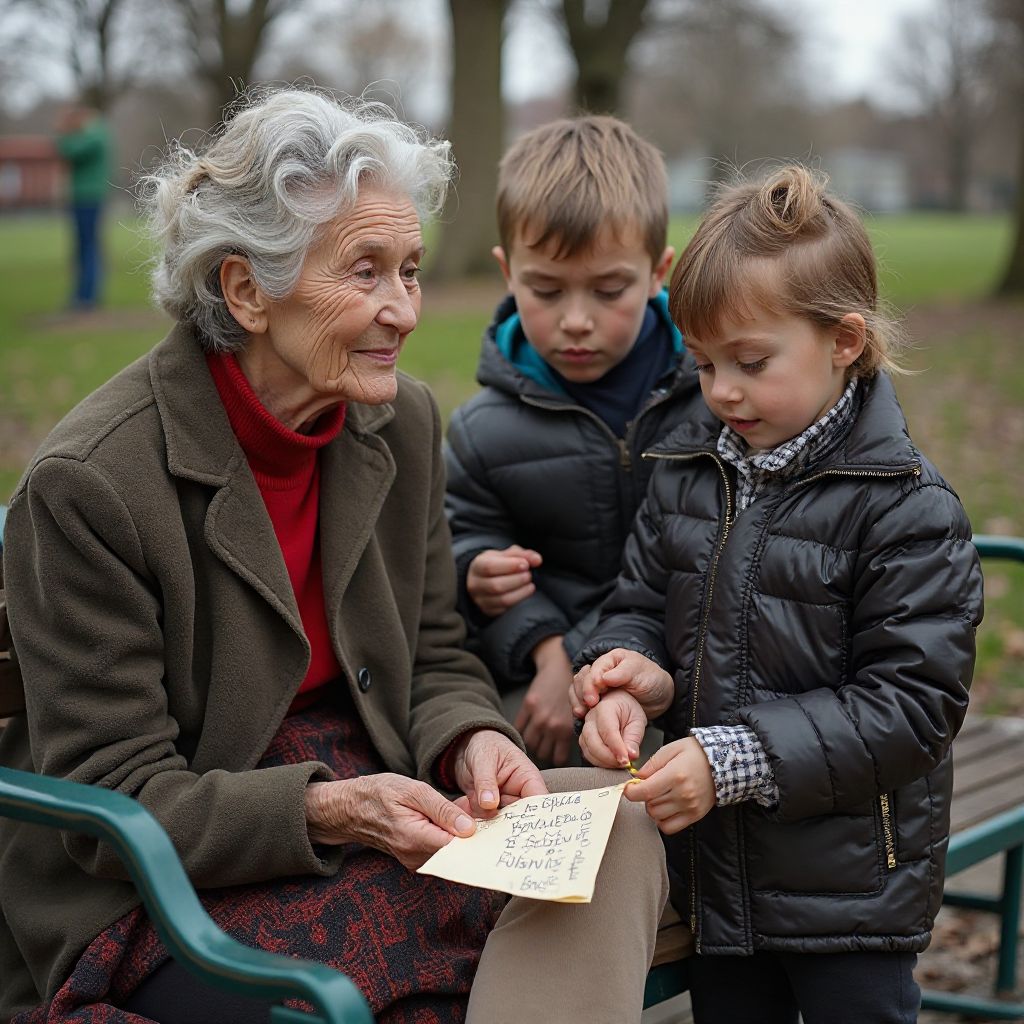 В один из таких обычных дней к ней подошла группа детей, которые играли неподалёку. Один из мальчиков, заметив под лавочкой странный предмет, поднял старую, слегка помятую записку. «Смотрите, что я нашёл!» — захлопал он в ладоши, показывая находку друзьям. Женщина с тревогой посмотрела вниз, её сердце застучало быстрее, словно предчувствуя что-то важное. Рабочие, которые ремонтировали рядом детскую площадку, тоже заметили суету и подошли ближе. «Это что, какая-то тайна?» — спросил один из них, наклонившись взглянуть на бумагу. Женщина замерла, дрожь пробежала по телу, руки непроизвольно сжались в кулаки, а дыхание ускорилось.