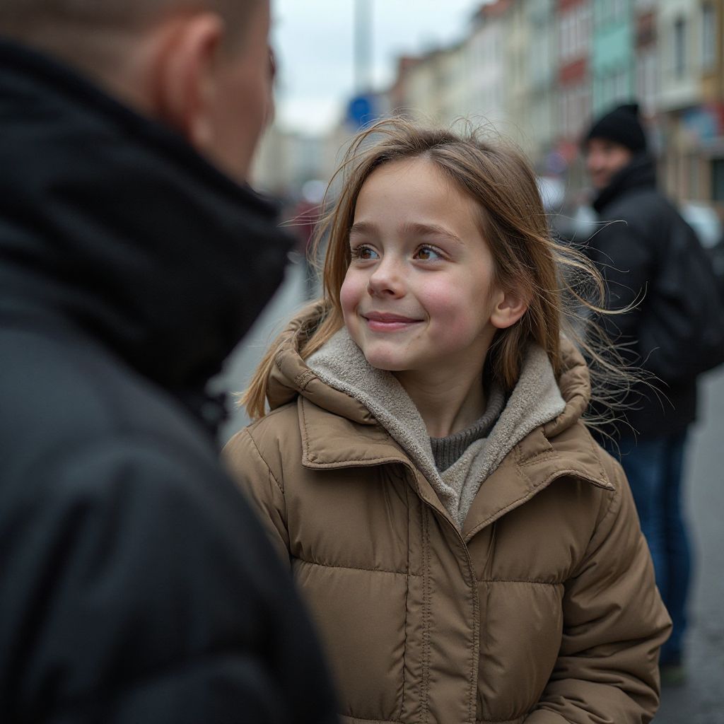 Тем временем прохожий вспомнил, как когда-то и он сам был обделён вниманием, как взрослые закрывали глаза на боль юных душ. Внутренний монолог наполнил его сознание: «Если я молчу сейчас — значит, я такой же виноват. Но сегодня всё изменится. Сегодня я стану тем, кто протягивает руку и даёт надежду, кто восстанавливает справедливость. Нельзя закрывать глаза, когда она так нуждается в помощи». Он сжал зубы и посмотрел на девочку с той решимостью, которая рождается в самые мрачные часы.