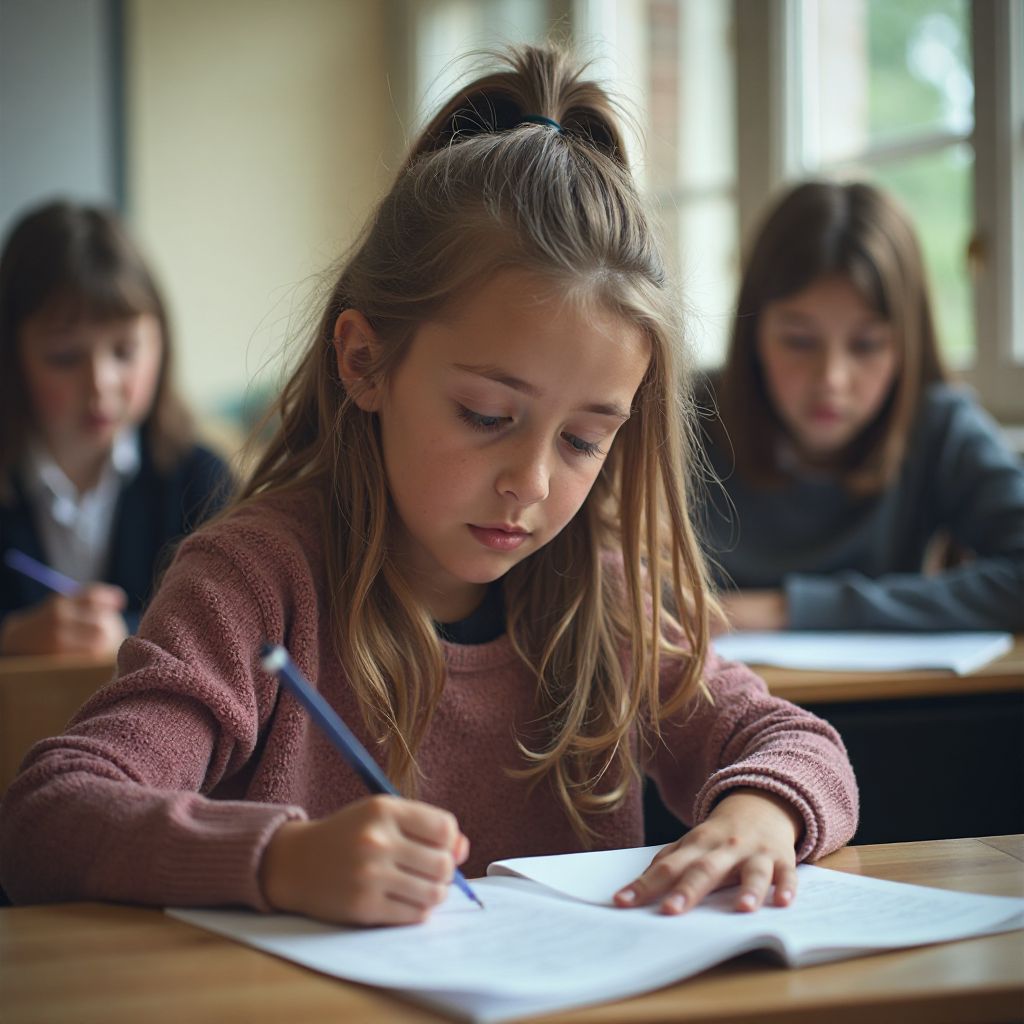 Марина с трудом сдерживала дыхание — сегодня должен был быть неожиданный тест. Она боялась, сердце билось быстрее, но её мысли блуждали далеко от простых заданий. Она думала о своём доме, где мама не могла купить еды, и о младшем брате, который ждал её помощи. Тихоня, которую все считали безвредным, забытым ребёнком, хранила внутри груз, который никто не видел. «Если я сейчас провалюсь, они будут смеяться», — думала она, чувствуя, как дрожь пробегает по телу. Но в глубине души росло желание доказать — она не хуже других.