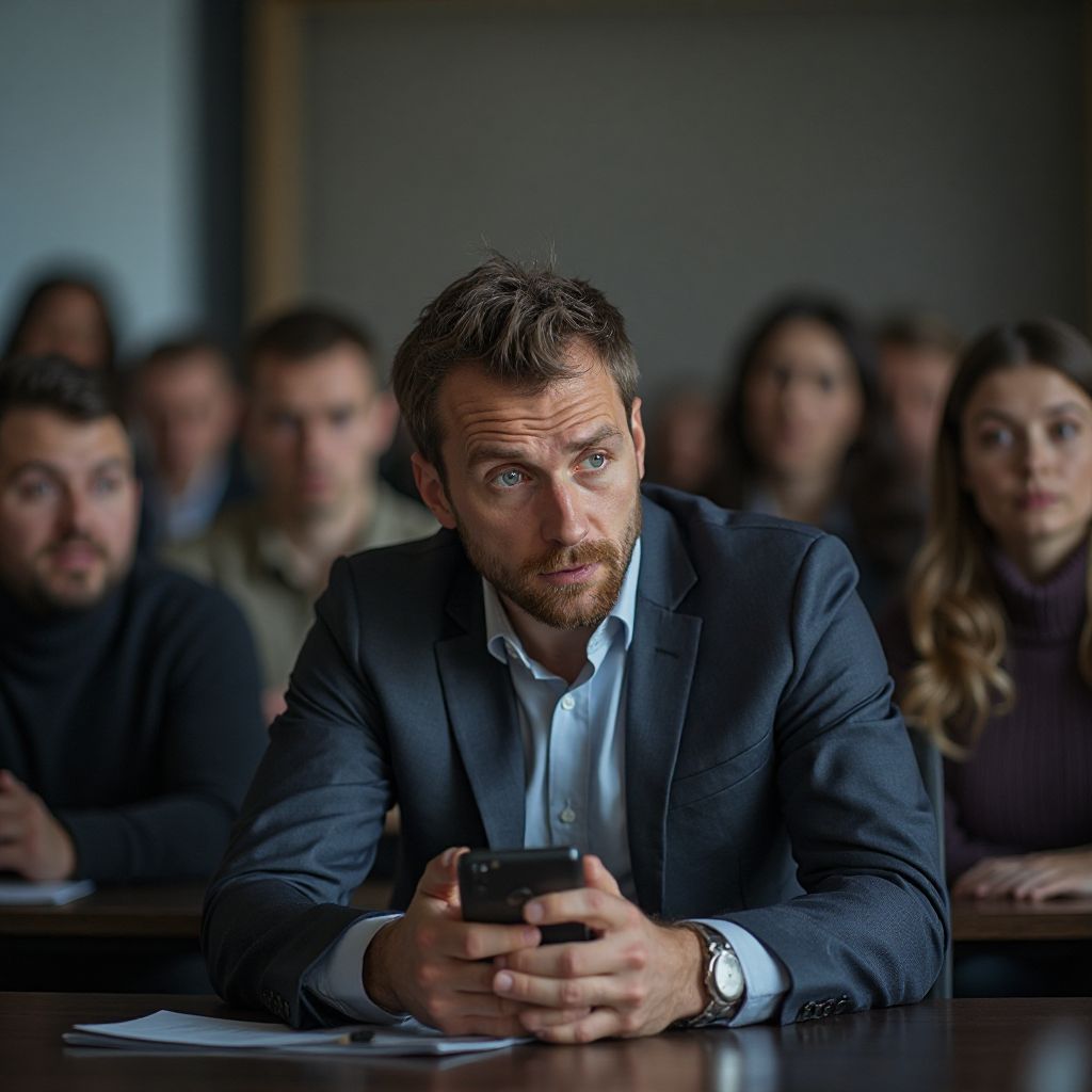 Мужчина поднял телефон после долгого молчания — и всё в зале замерло