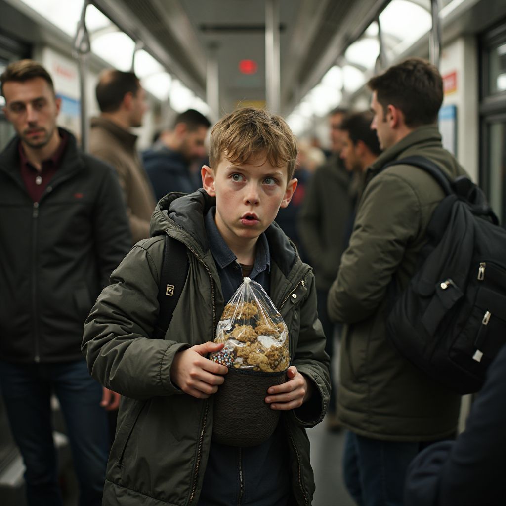Воздух наполнялся напряжением, когда внутри сумки мальчик ощутил что-то твёрдое и странное. Взгляд мелькнул между него и собравшейся толпой. Волнение резко нарастало, дыхание учащалось, ладони покрывались холодным потом. Он почувствовал, как тело будто застыло в ожидании неизбежного.