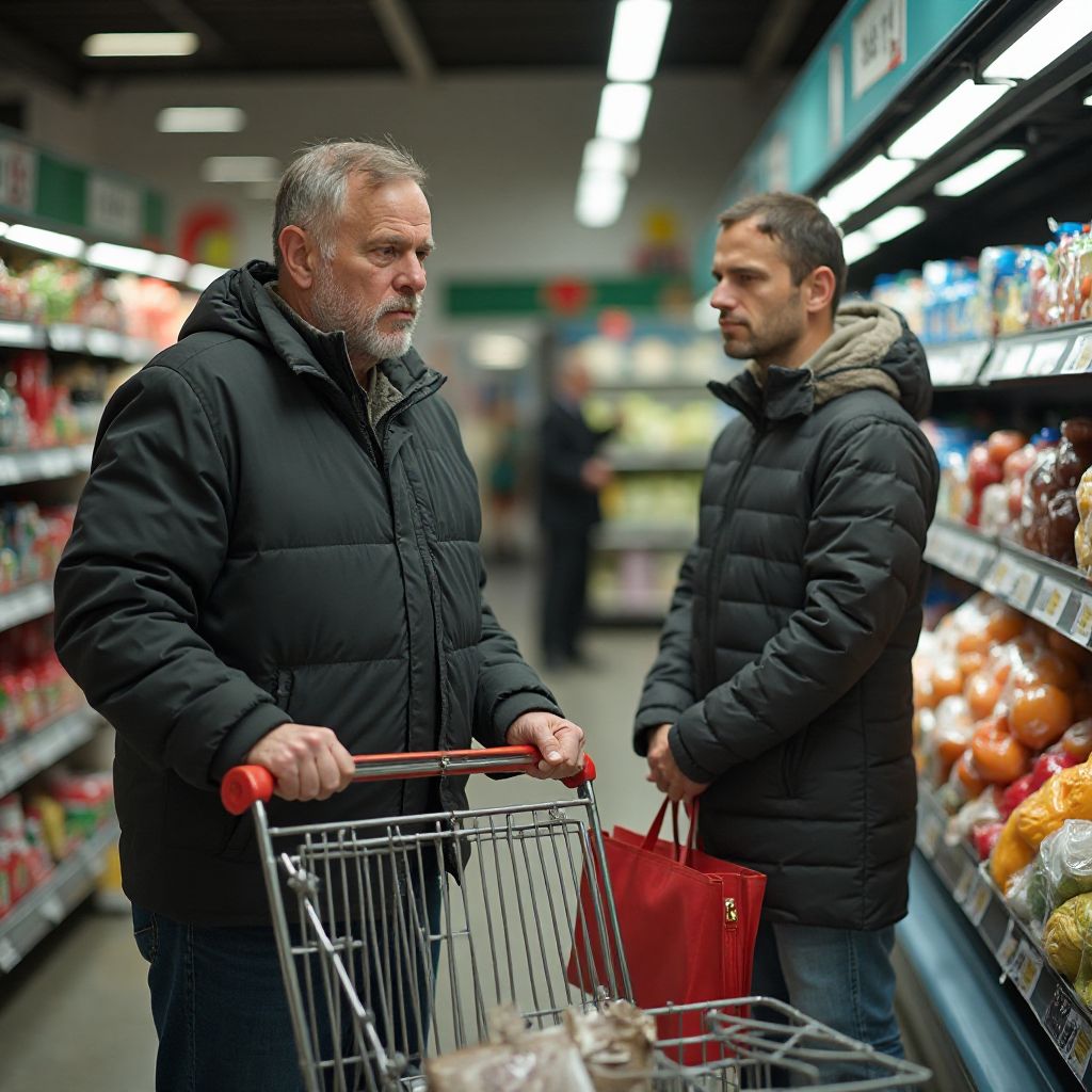Мужчина, оставшийся с тележкой у выхода, замер на мгновение, словно ожидая чего-то невидимого. Его ладони были неспокойны, а дыхание прерывистым, сердце колотилось о ребра словно птица в клетке. За спиной слышались тихие шёпоты и осторожные взгляды — каждый присутствующий чувствовал, что сейчас случится нечто важное. Он медленно обернулся и взглянул в глаза работника магазина, а потом — на собравшихся покупателей. В течение нескольких секунд время словно остановилось.