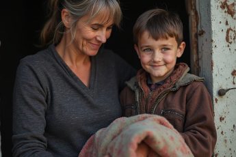В холодном приюте для бездомных, утонувшем в слабом свете тусклых ламп, воздух был пропитан влажностью и смешанными запахами старой пыли и несвежего хлеба. Окна в тяжелой раме дрожали под порывами зимнего ветра, а за дверью слышался редкий глухой стук проходящего автобуса. Был ранний утренний час, когда мир ещё не проснулся, и лишь тихие шаги да приглушённые голоса нарушали молчание. Здесь, в углу зала, на старой деревянной скамье, стояло несколько истертых одеял с запахом нафталина — среди них тёплое шерстяное, которое сжимала в руках женщина.