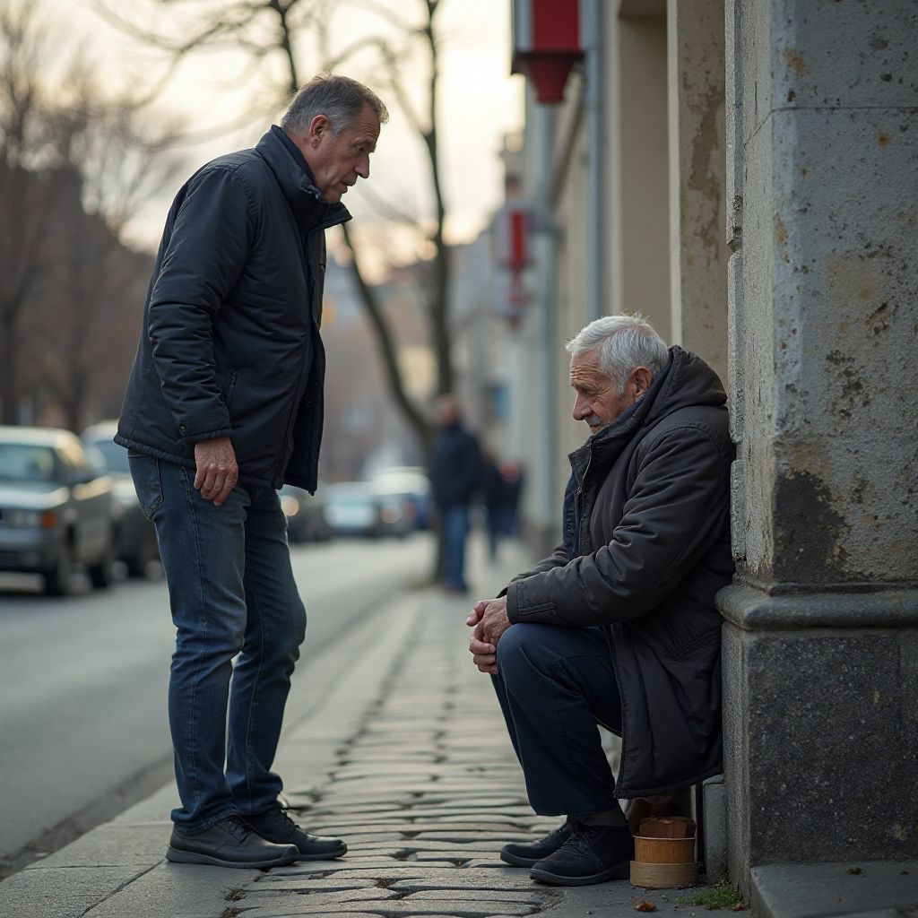 «Вы не одни», — сказал молодой мужчина, глядя прямо в глаза старика. — “Я тоже знаю, что значит быть отвергнутым. Давайте вместе попробуем что-то изменить.” В этот момент один из прохожих, мужчина в костюме, подошёл вплотную и сказал: «Это несправедливо. Мы должны помочь, пока не поздно.»