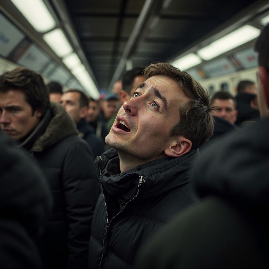 В голове мужчины крутились мысли, словно шквал ветра в холодную ноябрьскую ночь. Он вспоминал, как ещё вчера отец отказывался помочь с деньгами, как отказали на работе после череды болезней. Тревога грызла изнутри, мысли о ребёнке, который ждёт его дома. Сегодня он в метро — всего лишь надежда успеть к малышу, заплатить хоть за хлеб. Сердце обвиняло себя за неудачи, губы сжимались от тяжести безысходности.