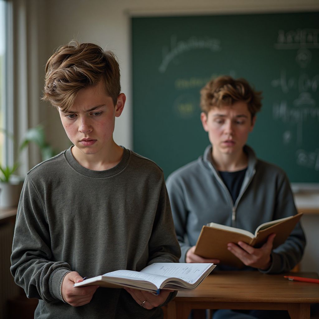 Тяжесть атмосферы ощутимо выросла, когда учительница, вошедшая в кабинет, заметила движущуюся сцену. Её лицо побледнело, и дыхание вдруг стало прерывистым. «Что здесь происходит?» — спросила она строго и в то же время с заметным волнением. Но прежде чем кто-либо успел ответить, Алексей увидел, как Виктор листает страницы с его самым сокровенным — записки о ночных страхах, о семейных проблемах, об унижениях и отчаянии. Сердце мальчика било всё сильнее, дыхание учащалось, ладони вспотели.