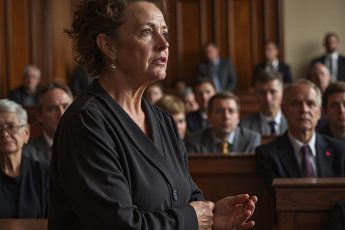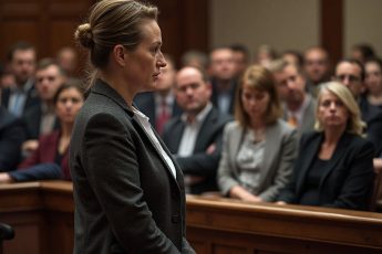 Зал суда был погружён в полумрак, тусклый свет ламп падал на усталые лица присутствующих и дрожащую скамью