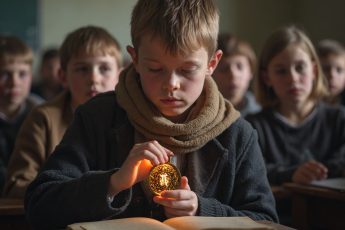 В классе, где пахло мелом и старыми учебниками, тусклый свет лампочки едва освещал тёмный уголок у окна.