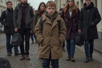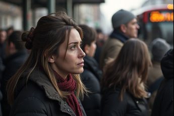 Осенний вечер опускался на шумный городской перекрёсток, где на автобусной остановке собралось несколько человек.